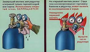 Взрывы кислородных баллонов при их открытии, если на штуцере баллона или редукторе есть масло.