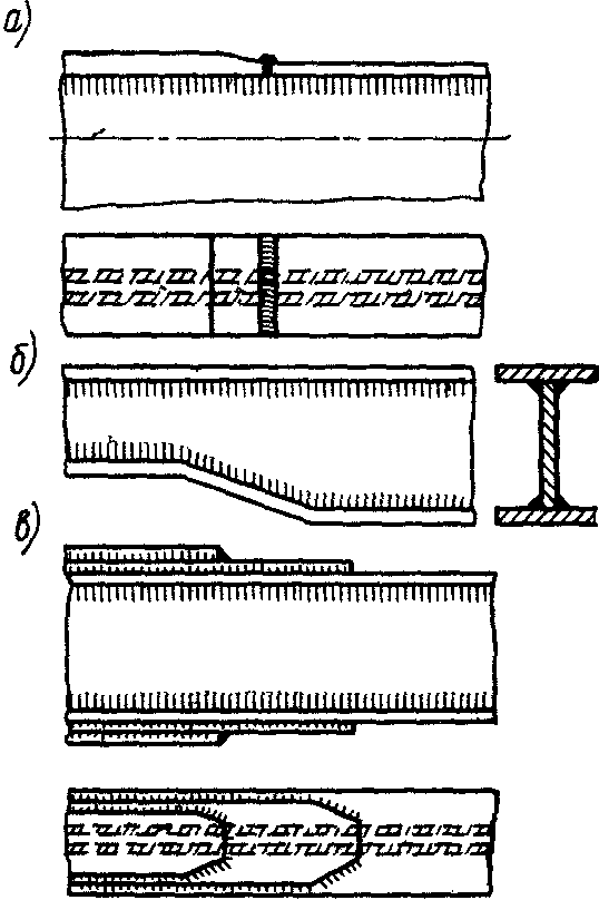 Иногда применяют несколько пар горизонтальных листов, если толщина каждого из них s≥30-35 мм, при этом в менее нагруженных участках число листов уменьшают (Рис. 7.2, в).
